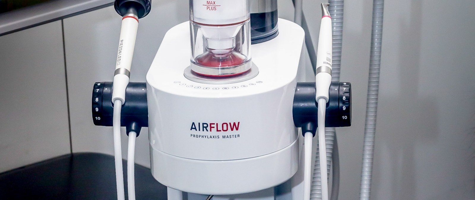 Airflow Prophylaxis Master van EMS is het nieuwste apparaat waarmee plaque, aanslag en tandsteen op een vrijwel pijnloze manier verwijderd kan worden. Bij de Airflow Prophylaxis Master wordt er gereinigd met een heel zacht poeder gemengd met water. Het poeder dat gebruikt wordt is zo zacht dat het ook gebruikt kan worden op de zachte weefsels. Hier hoeft u zich dus geen zorgen om te maken.